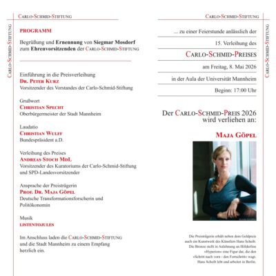 Die Preisverleihung 2026 findet am Freitag, 8. Mai im Mannheimer Schloss statt.